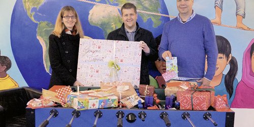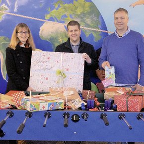 Weihnachtsgeschenke und Kicker für die Don Bosco Katholische Jugendhilfe in Osnabrück