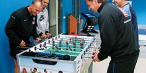 Bally Wulff hat den Freizeitraum im Sportinternat von Hertha BSC mit neuen Unterhaltungsgeräten ausgestattet. Trainer Falko Götz dankt für die…
